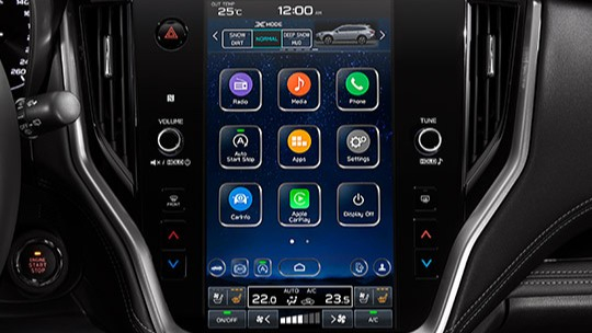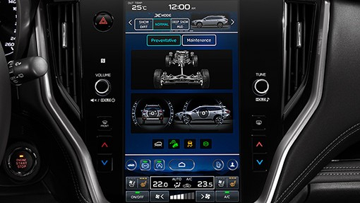 SHR aktivní natáčecí BiLED přední světlomety s aut. vyrovnáváním výšky a LED denním svícením DRL, s funkcí AUTO | Rozmrazovač stíračů předního okna | Děšťový a světelný senzor | Anténa ve tvaru ploutve | LED zadní sdružené svítilny | Boční oplastování | Stírače – aut. přední aero stírače s dešťovým senzorem, zadní stírač s cyklovačem | Přední boční tónovaná skla s UV ochranou, zatmavená zadní skla Privacy | Elektricky ovládaná a sklopitelná vnější zpětná zrcátka s intergovaným blikačem | Opravná sada pneumatik (bez rezervního kola) | Přední a zadní mlhová světla LED | Střešní ližiny s integrovanými výklopnými příčníky | Kola z lehké slitiny ALU 18" – tmavě šedá | Střešní spoiler | Výsuvné ostřikovače světlometů | Elektricky nastavitelné sedadlo spolujezdce (8 směrů) | Elektrické ovládání dveří zavazadlového prostoru s bezdotykovou funkcí | Sklápění zadních opěradel ovladačem ze zavazadlového prostoru | Vnitřní zpětné zrcátko s automatickým stmíváním | Praktická kapsa na opěradlech předních sedadel | Čalounění sedadel prémiovou tkaninou – tmavé | Kožený volant a hlavice volící páky převodovky | Elektricky nastavitelné sedadlo řidiče s bederní opěrkou (10 směrů) | Loketní opěrka s odkládací schránkou | Středová loketní opěrka na zadním sedadle s integrovaným držákem nápojů | Stavitelná délka sedáku řidiče | Sklopná opěradla zadních sedadel s dělením v poměru 60/40 a s nastavitelným sklonem | V 5 stupních nastavitelné hlavové opěrky hlavy vpředu, polohovatelné | Upevňovací oka a háčky v zavazadlovém prostoru | Dvouzónová automatická klimatizace s prachovým filtrem a hlasovým ovládáním | Ukazatel venkovní teploty | USB A port 2.4A a AUX vstup (vpředu ve středovém panelu) | Automatická funkce blikačů pro změnu jízdního pruhu (trojblik) | Elektrické vyhřívání vnějších zrcátek | Dvě 12V zásuvky (ve schránce před spolujezdcem a v zavazadlovém prostoru) | Přední držáky na 2 nápoje ve středové konzoli, dále na všech dveřích | Elektrické vyhřívání volantu | Vyhřívání předních sedadel | Vyhřívání zadních sedadel | Welcome Lighting ‐ boční světla, obrysová světla a světla registrační značky se rozsvítí při opuštění vozu | Sluneční clony s integrovanými kosmetickými zrcátky a lampičkami | Smart key systém - bezklíčkové ovládání centrálního zamykání a startování | Kryt zavazadlového prostoru | Multibox v zavazadlovém prostoru | Ventilační systém pro zadní cestující ve středovém tunelu | Elektricky vyhřívané zadní okno s časovačem | Přístup do vozu pomocí bezpečnostního kódu PIN | Čtecí lampičky, osvětlení zavazadlového prostoru | Odkládací schránka na středové konzoli | Elektrické ovládání bočních oken s funkcí auto dolu/nahoru a s ochranou proti přivření | Hlasové ovládání | Audio systém s barevným 11,6" displejem, 6 reproduktorů, DAB+ | SUBARU STARLINK Infotainment system | Rozhraní Apple CarPlay / Android Auto | Ovládání audia na volantu | Systém rozpoznávání hlasu v českém jazyce | Bluetooth, streamování audia a funkce hands-free pro telefon | Tempomat | Auto START / STOP Systém s možností deaktivace (ISS) | Hliníkové pedály | Řadicí páčky pod volantem | V obou osách nastavitelný volant | Elektronická parkovací brzda | Výškově a podélně nastavitelný volant obšitý kůží s ovládáním audia, hands-free, tempomatu a omezovače rychlosti | Systém kontroly stability vozu s možností vypnutí Vehicle Dynamics Control System (VDC) | Systém kontroly trakce vozu Traction Control System (TCS) | 4 kanálový protiblokovací systém brzd Antilock Braking System (ABS) | Elektronické rozdělení brzdného tlaku (EBD) | Systém přerozdělování točivého momentu Active Torque Vectoring (ATV) | Systém pro sjíždění svahu Hill Descent Control | Adaptivní tempomat | X-MODE - systém jízdního režimu - dvoumódový Snow/Dirt a Deep Snow/Mud | Elektrický posilovač řízení | Brzdový asistent BA | AVH - Elektronická parkovací brzda s funkcí Auto Vehicle Hold - systém pro stání bez stisknutého pedálu brzdy | SI-DRIVE - systém režimů motoru a převodovky (SUBARU Intelligent Drive) | Přední bezpečnostní pásy s předpínači a omezovači tahu | Ukazatel nezapnutých bezpečnostních pásů | Zadní kamera | 3-bodové bezpečnostní pásy pro všechny cestující (s výškovým nastavením vpředu) | Bezpečnostní konzole pedálů | Dětská pojistka zadních dveří | Upozornění na osoby vzadu Rear Seat Reminder | Ochranný systém brzd proti rozjetí po kolizi | Adaptivní funkce předních světlometů Adaptive Driving Beam (ADB) | Bezpečnostní systém na podporu řízení EyeSight | Autonomní nouzové řízení | Kamery pro sledování prostoru okolo vozu Multi View Monitor Systém (přední a boční) | Řízení s bezpečnostním sloupkem | Výztuhy bočních dveří, výztuhy okolo kokpitu | Imobilizér | Uchycení dětské sedačky ISO-FIX | Brake Override - systém ochrany proti neúmyslnému zrychlování | e-Call (systém tísňového volání) | EyeSight Assist Monitor | Systém monitorování řidiče DMS (Driver Monitoring System) | Automatické brzdění při přiblížení se k překážce při couvání RAB (Reverse Automatic Braking) | HBA (High Beam Assist) - systém automatického přepínání mezi dálkovými a potkávacími světly | SRVD (Subaru Rear Vehicle Detection) - systém pro detekci vozů v mrtvém úhlu | Vnitřní zpětné zrcátko s automatickým stmíváním | Předkolizní brzdový systém | SRS přední, boční (pro řidiče a spolujezdce), hlavové airbagy, kolenní airgbag řidiče a airbag v sedáku spolujezdce vpředu | Funkce zabraňující vyjetí z jízdního pruhu | Udr