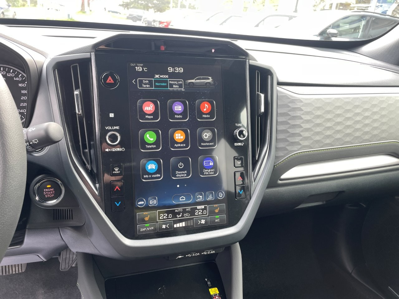 Digitální komfort: Interiér je navržen s ohledem na intuitivní ovládání. Dominantou je velký dotykový displej s bezdrátovou propojitelností Apple CarPlay a Android Auto, takže váš telefon a navigace jsou vždy po ruce.